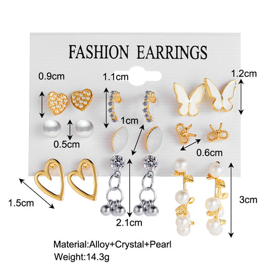 Earring Set 9 Pairs Butterfly Hollow Out Love