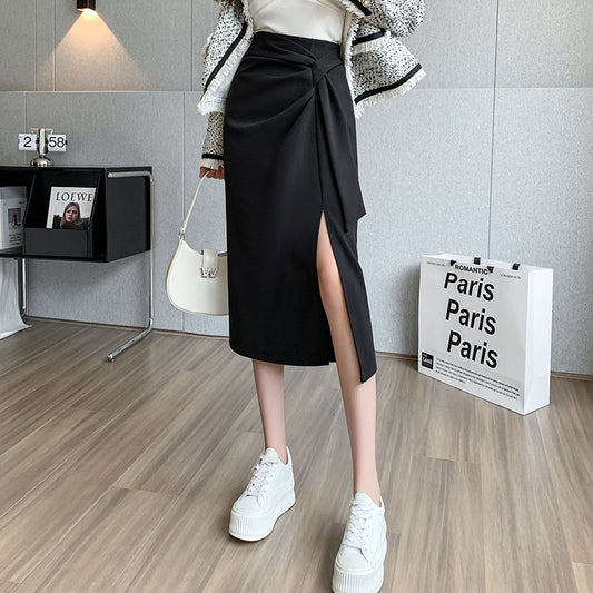 Autumn And Winter New Woolen Lace-up Sexy Slit Skirt